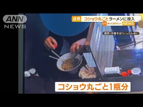 このほか、大量の酢をどんぶりの中に入れる様子も映っています。結局、男性はラーメンを大量に残したまま、店をあとにしました。