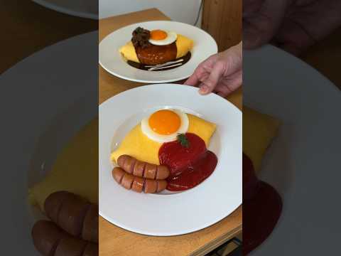 今回はシンプルなオムライスに目玉焼きやソーセージ、チーズなどのトッピングを全部乗せしました!