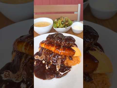 肉厚ハンバーグを載せた半熟オムライス!芳醇なデミグラスの味わいもたまらない【TAMAGOYA:静岡 三島】