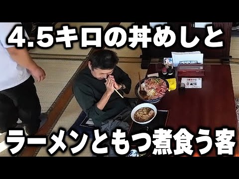 【栃木】4.5キロ丼とスープ替わりにラーメンともつ煮。野良で現れたレベチ大食い客に店内が騒然となる瞬間
