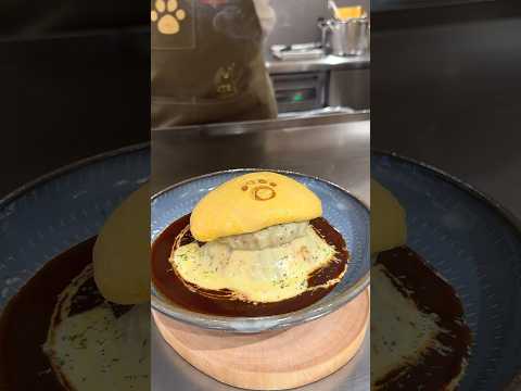 ハンバーグを丸ごと挟んだオムライスを食べられるお店。
