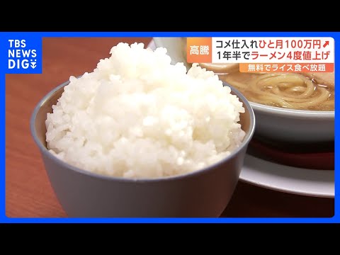 “ライス無料”がウリのラーメン店 コメ高騰に苦しみ1年半で4度目の値上げ決断 3月からは電気・ガス代も上がる中3月4月の食品値上げは5000品目超の見通し|TBS NEWS DIG