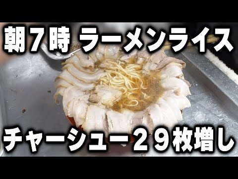 朝7時に「ラーメンでチャーシュー29枚増しにライス大盛り」を食う働く男の特大朝めしが凄い