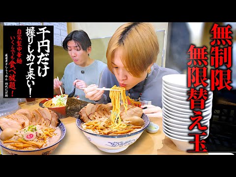 【大食い】1,000円でラーメン替え玉し放題のお店に“はらぺこ大食い男“襲来!何玉食べれるのか??【ぞうさんパクパク】【にぼ助】