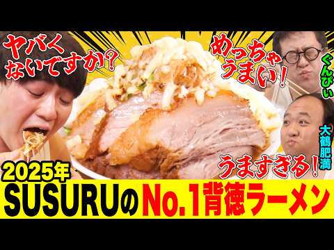 【SUSURU参戦】SUSURUTV.が選ぶNo.1背徳ラーメンをぐんぴぃ&大鶴肥満が爆食!ニンニクヤサイカラメアブラ!豚マシ&チーズで異次元の美味さに!厨房侵入し味の秘密を調査|背徳フライデー