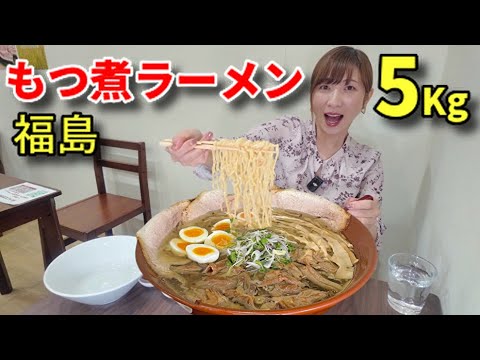 【大食い】郡山にある絶品もつ煮ラーメン!5キロ!【三宅智子】