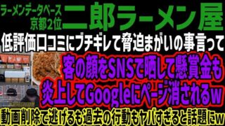グルメ 【二郎ラーメン屋】低評価口コミにブチギレて脅迫まがいの事言って客の顔をSNSで晒して懸賞金も炎上してGoogleにページ消されるw動画削除で逃げるも過去の行動もヤバすぎると話題にw
