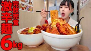 グルメ 【大食い】大谷選手も実食済‼️激旨辛ラーメン総重量6kgのデカ盛りセットに挑んだ結果【海老原まよい】
